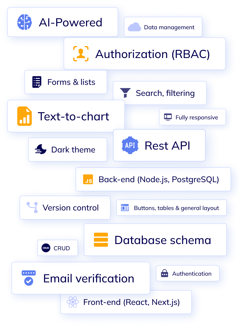 | 0 hours. Built-in auth system with login, registration, password reset, and role-based access control - ready out of the box. |