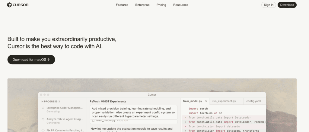 - Key Features: Powerful code generation, large-scale refactoring, enterprise-grade support.