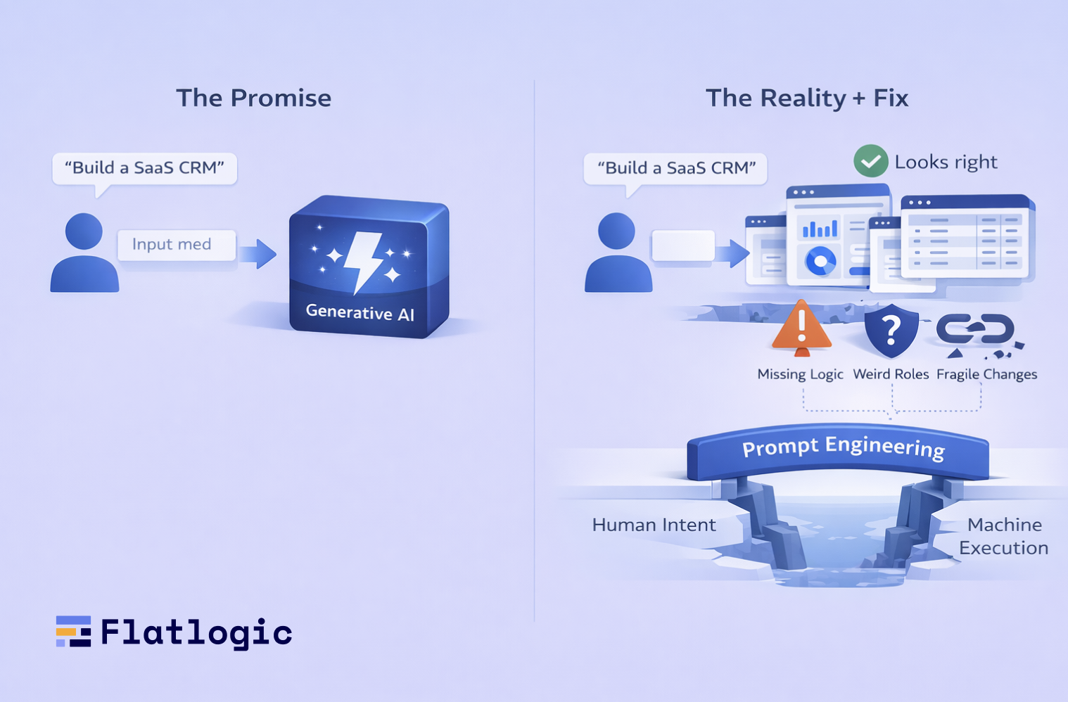 For many people, the first experience feels magical. You type something like build a SaaS CRM, press enter, and suddenly, there are pages, forms, and dashboards. But very quickly, the magic fades. The app looks right, but doesn’t behave right. Important logic is missing. Roles don’t make sense. Small changes break unrelated things. You regenerate again and again, hoping the next attempt will somehow be better.