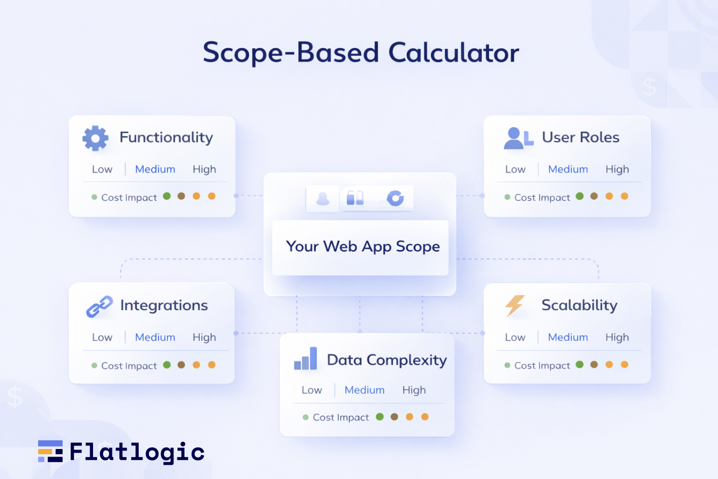 At its core, a scope-based calculator evaluates five factors: functionality, user roles, integrations, data complexity, and scalability. Each of these adds layers of effort and cost to your project.