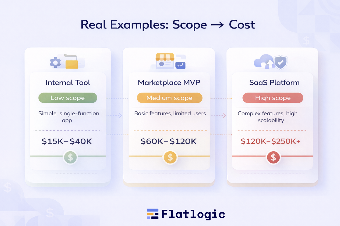 To make cost estimation more tangible, let’s look at how different levels of scope translate into real budgets. These examples show how cost grows not just with features, but with complexity.
