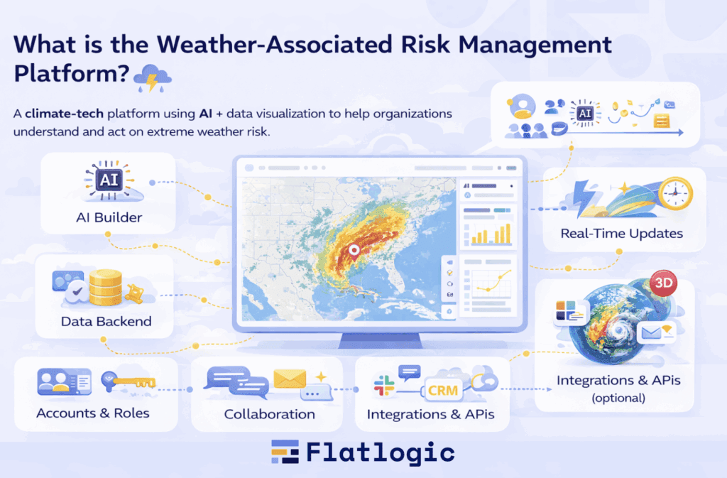 A weather-associated risk management platform is a climate-tech platform that uses AI + data visualization to help organizations understand and act on extreme weather risk. In plain terms, it combines weather/climate data, forecasting models, and a map-first dashboard so users can explore storms, patterns, and risk signals in a more operational, decision-friendly way.