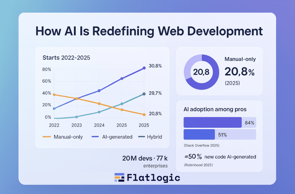 This detailed data from Flatlogic paints a clear picture: AI isn’t just influencing web development, it’s leading it. Understanding these insights helps teams and decision-makers confidently navigate the emerging AI-driven era.