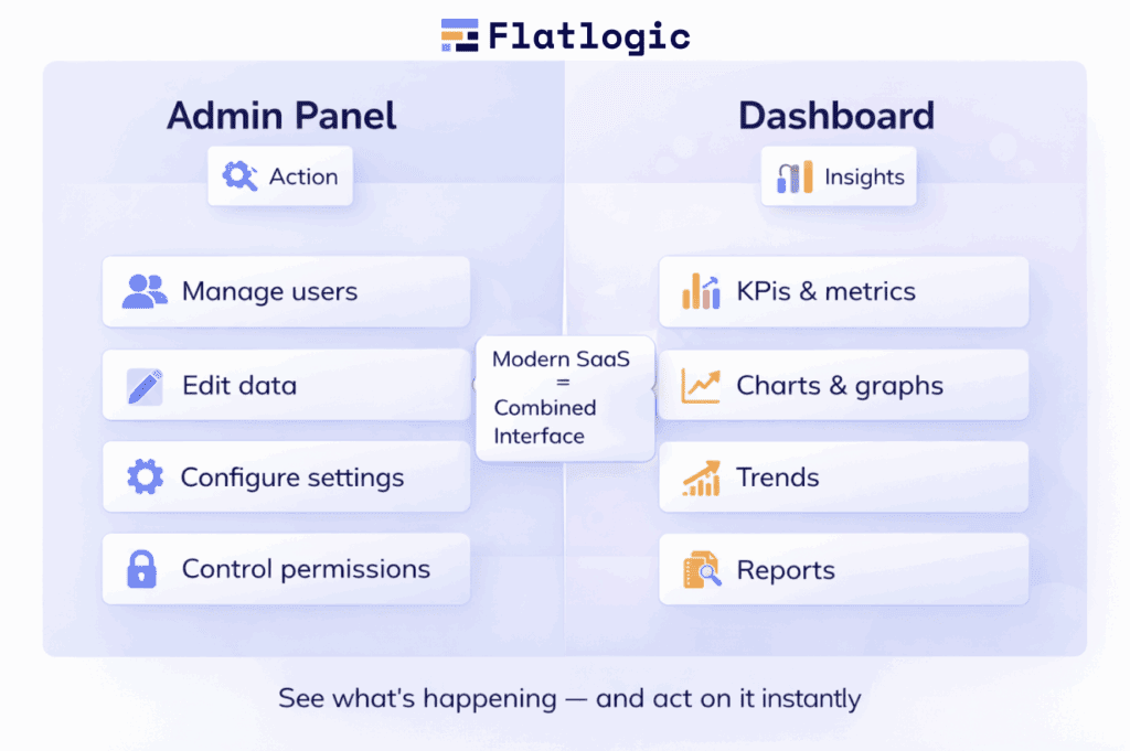 In modern SaaS applications, these two concepts are often combined into a single interface. For example, an admin panel may include built-in dashboards to give teams both control and context in one place.