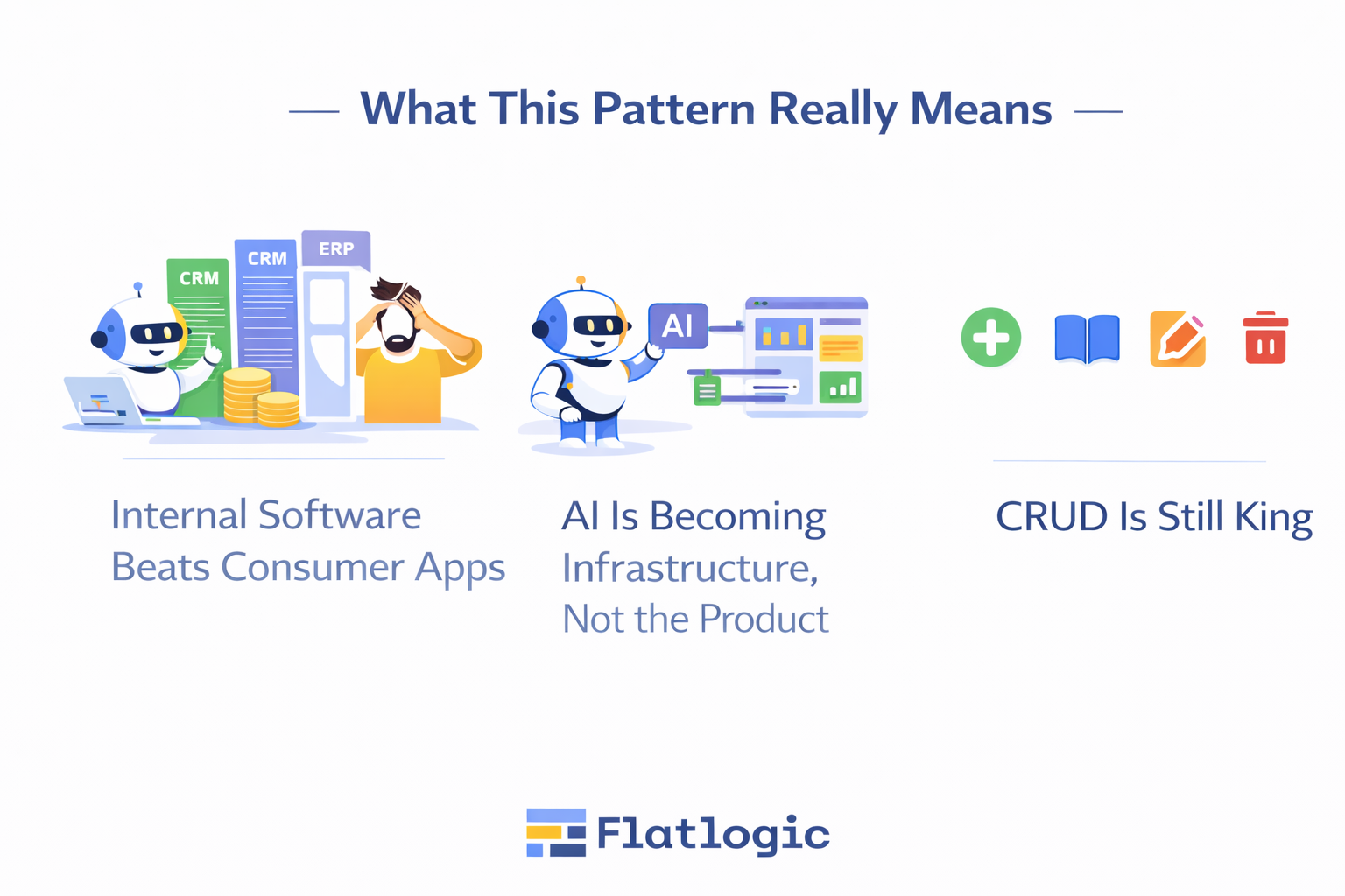 This matters because it reframes the role of AI in practice. People are not coming to Flatlogic to experiment with prompts or generate disposable prototypes. They are using AI as leverage, a way to compress time, reduce setup cost, and remove friction from building software that already has a clear owner and purpose.