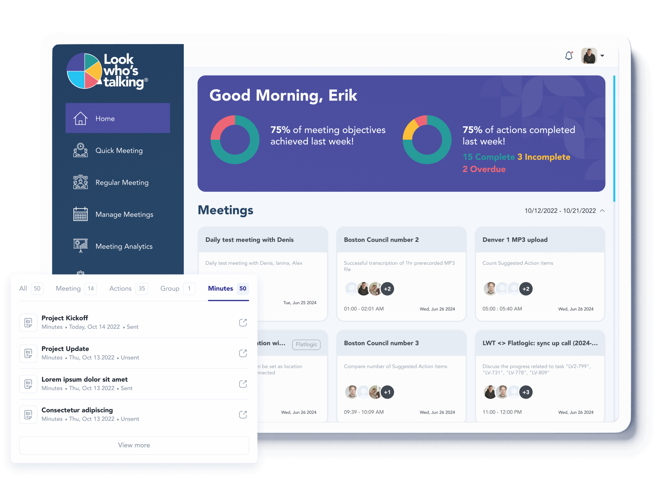 - Integrated Meetings Analytics, Group Management, and Meeting Templates for comprehensive service delivery.